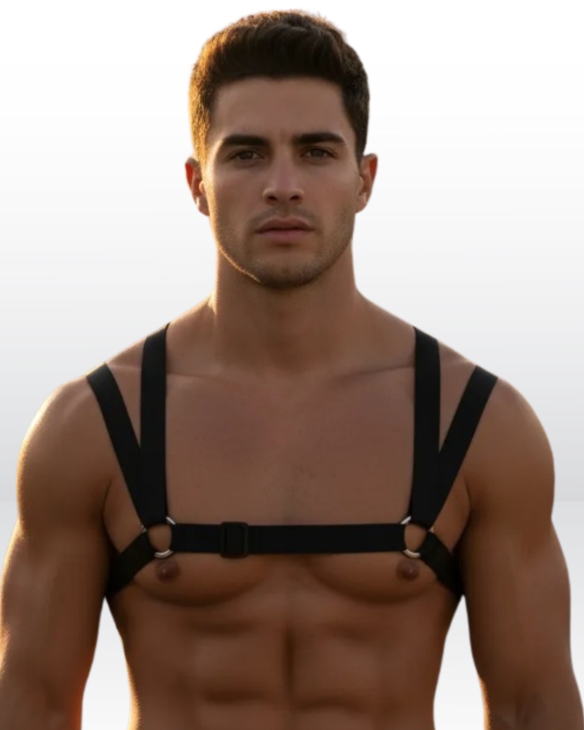 Acessório corporal de efeito visual feito em elástico com regulagem de tamanho para todo tipo de corpo.